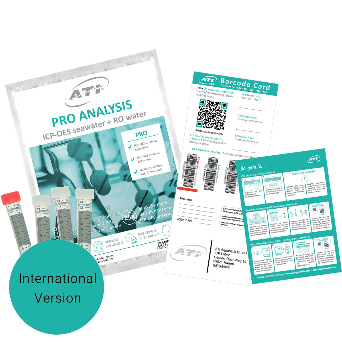 The ATI ICP-OES Pro Water Analysis is a laboratory water analysis of 43 parameters in a reef tank that provides a complete overview of a tank's health, which is impossible with traditional test equipment. Each test checks calcium, alkalinity, magnesium, other major elements, minor elements, key nutrients, and common pollutants. Trusted by reef keepers worldwide, a lab tech reviews each test and includes recommendations tailored to each tank.
