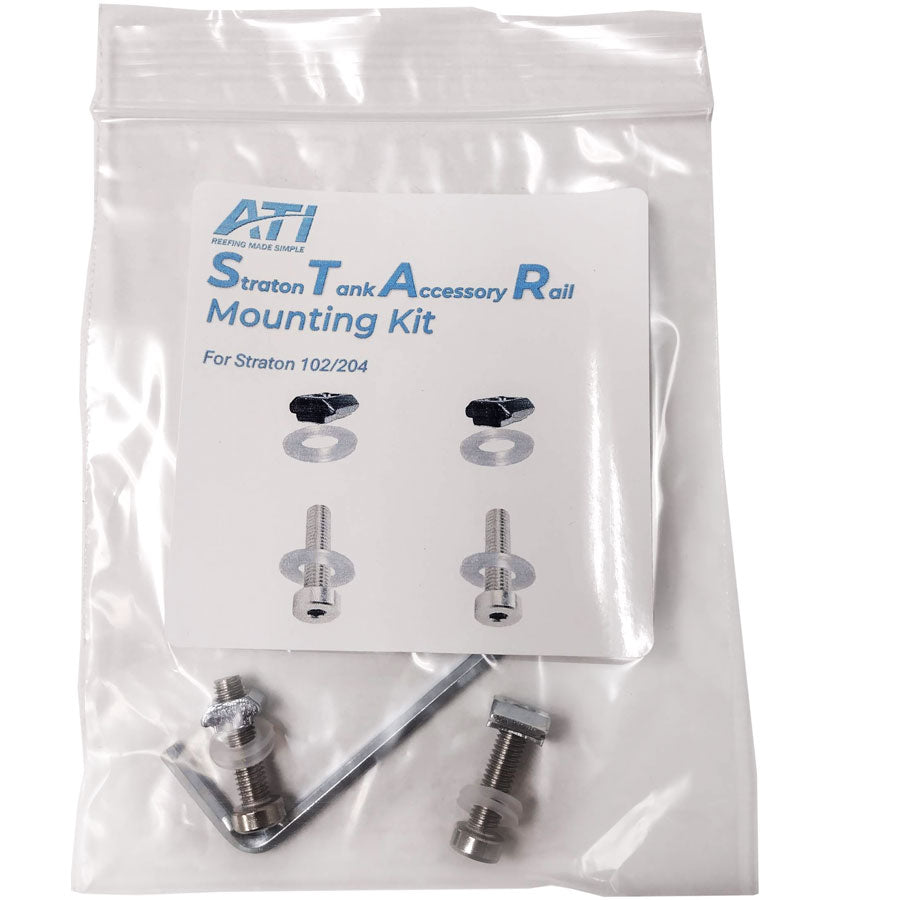 The ATI STAR Straton Pro Mounting Kit securely attaches a Straton Pro fixture to the ATI STAR Mounting Rail. The 102 and 204 fixtures use the same kit, whereas the 153 uses a separate mounting kit. Includes all necessary components to mount one fixture.